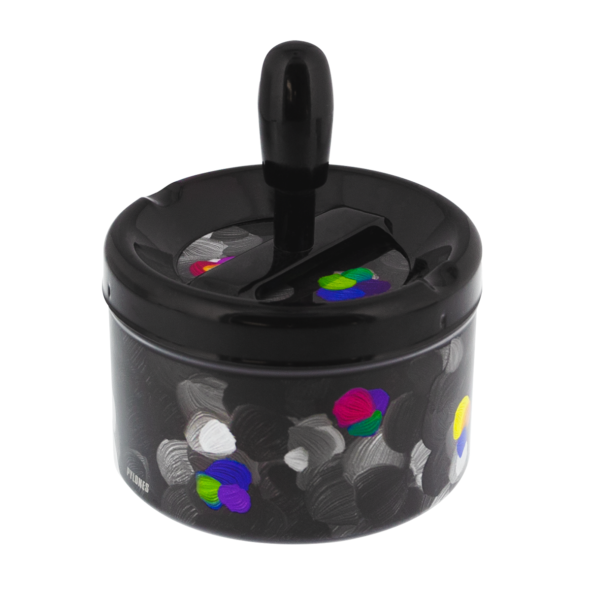 Details : Le couvercle du cendrier poussoir atténue les odeurs de tabac froid. Le système de poussoir fait tourner le couvercle.