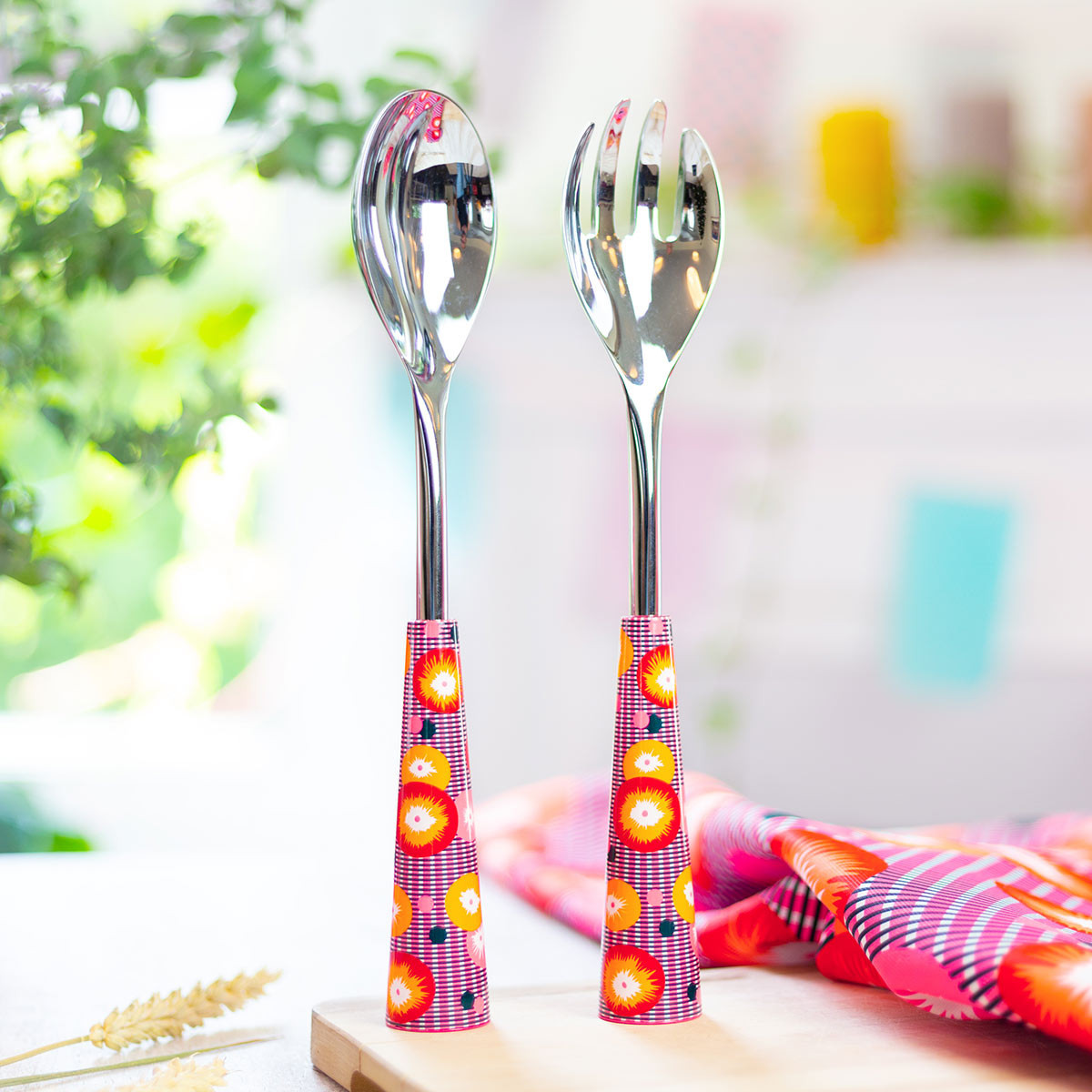 Pasta, Reis, Salat oder Obstsalat, dieses Besteck ist bereit für ein großes, farbenfrohes Bankett, die Party kann beginnen!