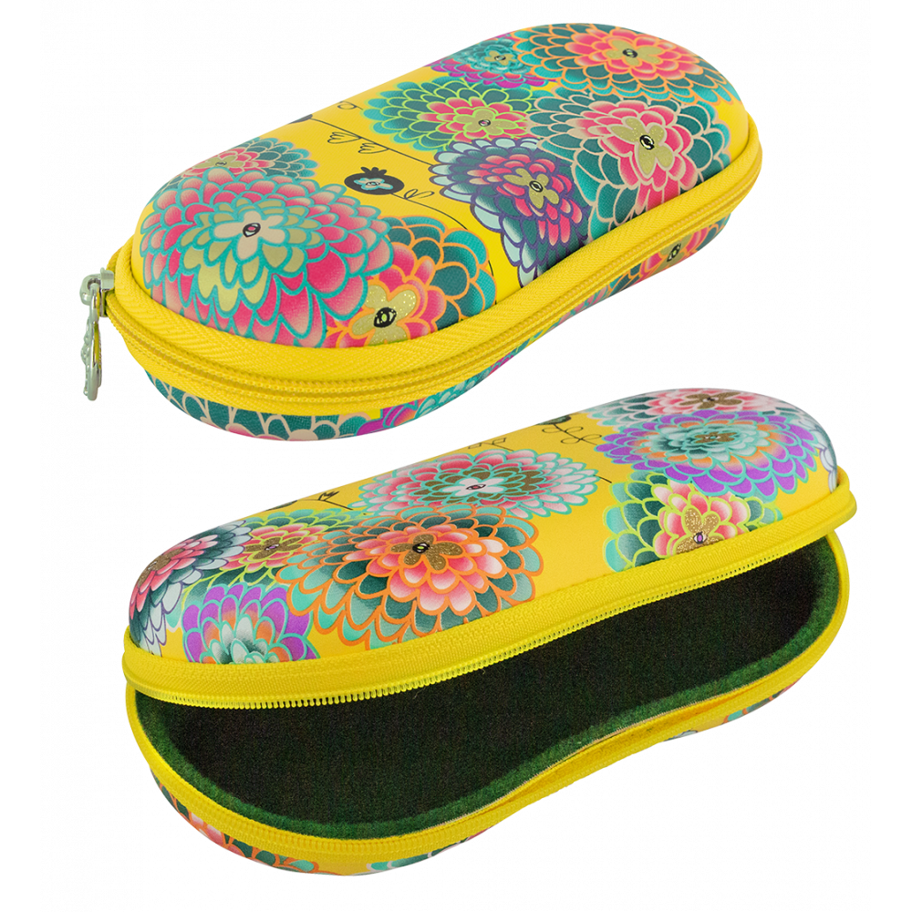 À la fois rigide et léger. Il protège très bien les lunettes. Le zip est idéal à utiliser. Je l’ai dans la collection Palette. Je l’adore !