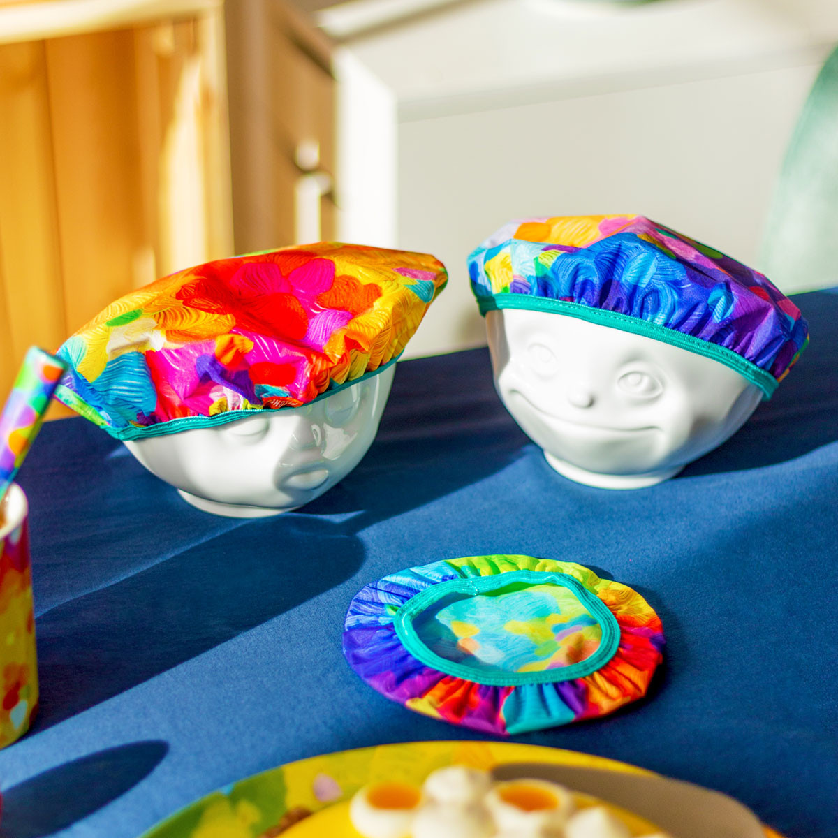 Diese Sets mit 3 Schalenabdeckungen bieten umweltfreundliche Lebensmittelverpackungen, die sich im Alltag leicht einsetzen lassen. Im Gegensatz zu Frischhaltefolie sind Schalenabdeckungen wiederverwendbar und passen sich dank ihrer elastischen Kontur leicht an alle Schalentypen an. Das Set hat mehrere Größen, um Schalen, Salatschüsseln oder Marmeladengläser abzudecken und so die Frische Ihrer Speisen zu bewahren.