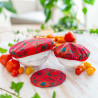 Diese Sets mit 3 Schalenabdeckungen bieten umweltfreundliche Lebensmittelverpackungen, die sich im Alltag leicht einsetzen lassen. Im Gegensatz zu Frischhaltefolie sind Schalenabdeckungen wiederverwendbar und passen sich dank ihrer elastischen Kontur leicht an alle Schalentypen an. Das Set hat mehrere Größen, um Schalen, Salatschüsseln oder Marmeladengläser abzudecken und so die Frische Ihrer Speisen zu bewahren.
