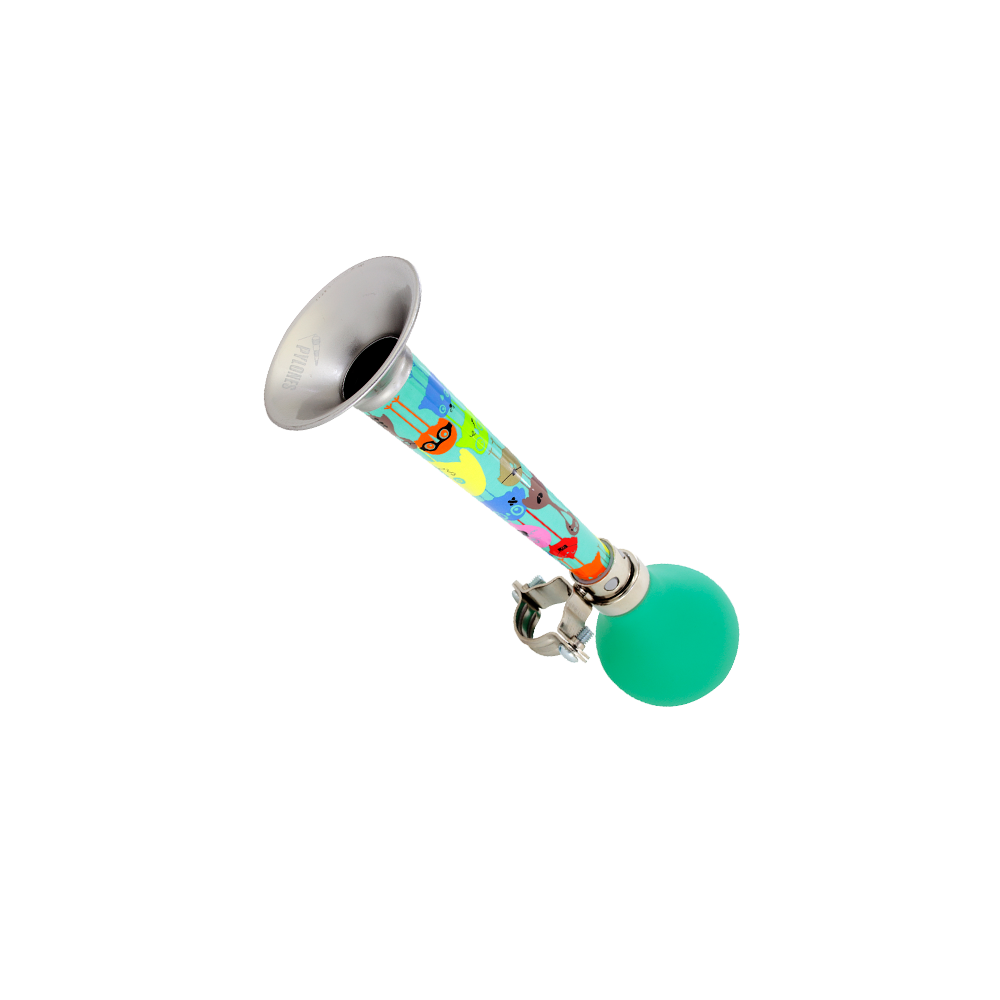 Ich bin der Poet der Kakophonie, der Surrealist des Klangs. Der Beweis: Ich erhebe die Signalhupe auf den Rang eines Kunstobjekts und sorge gleichzeitig dafür, dass die Leute Ihnen wie von der Tarantel gestochen aus dem Weg springen. Meine Einsatzgebiete sind vielseitig: am Fahrradlenker, am Kinderwagen und warum nicht auch am Einkaufswagen?