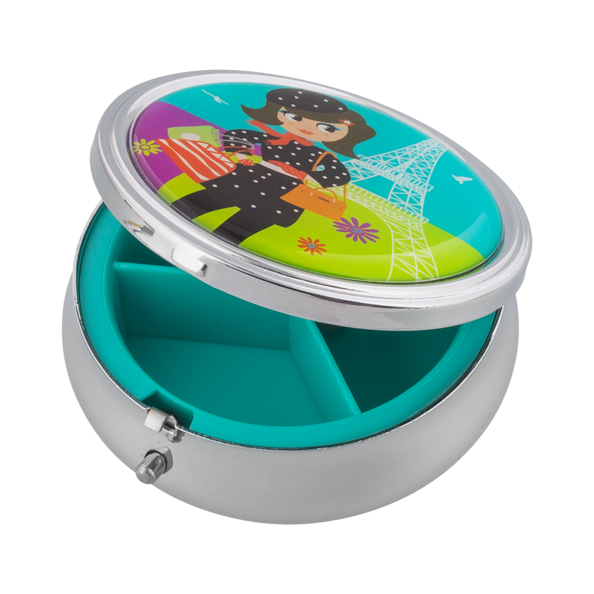 Details : Dose zum Aufbewahren von Medikamenten. Drücken Sie auf den Knopf, um die Dose zu öffnen. Um sie wieder zu schließen, brauchen Sie nur den Deckel zuzudrücken, bis er einrastet.