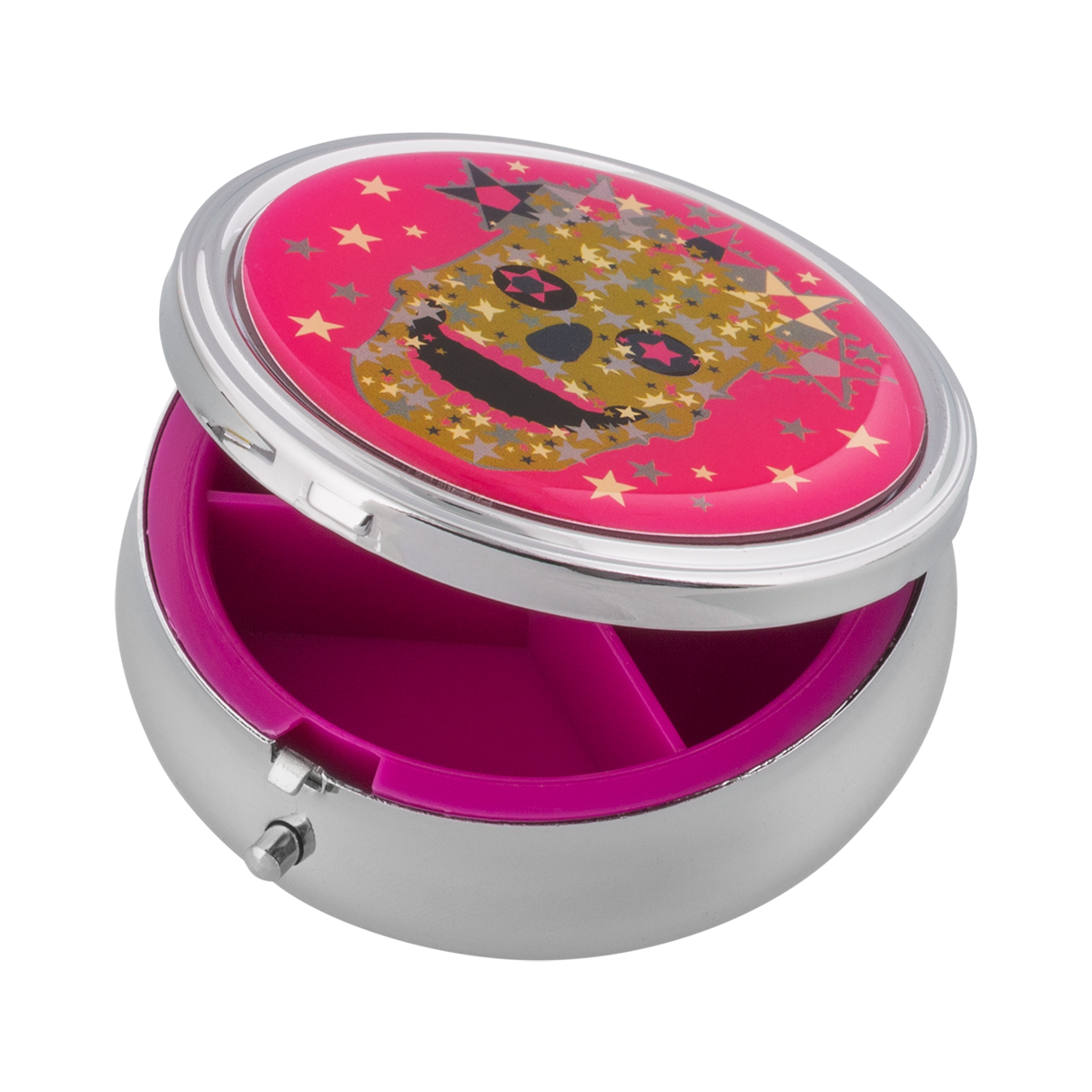 Details : Dose zum Aufbewahren von Medikamenten. Drücken Sie auf den Knopf, um die Dose zu öffnen. Um sie wieder zu schließen, brauchen Sie nur den Deckel zuzudrücken, bis er einrastet.