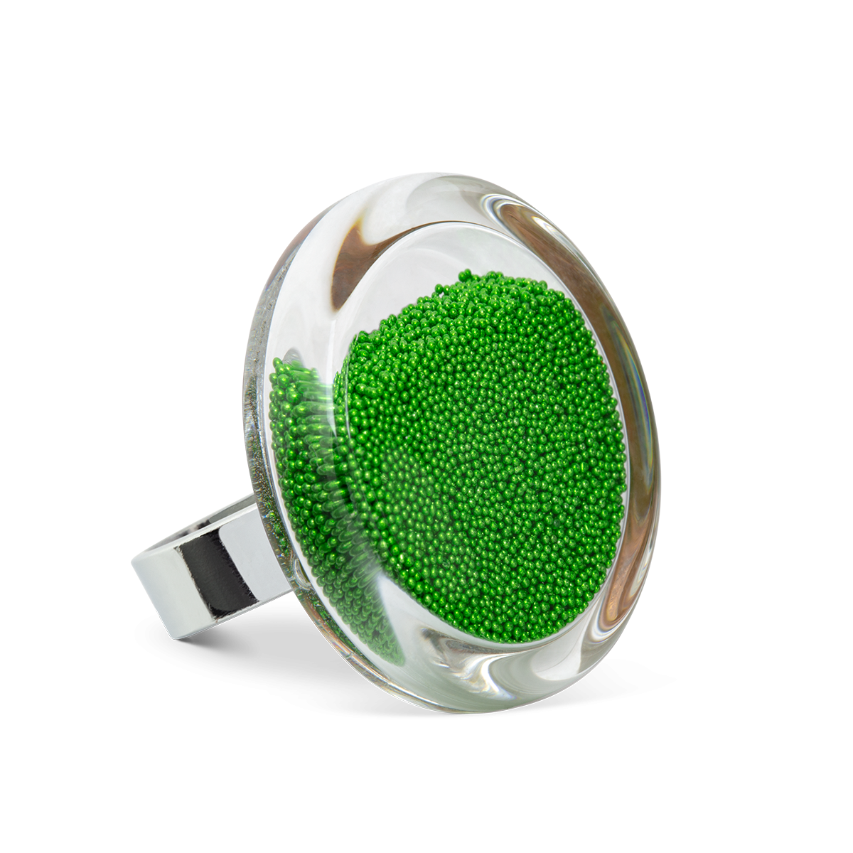 Details : Verstellbare Ringe. Glasschmuck, geblasen in Frankreich. Handwerkliche Herstellung durch Glasbläser.