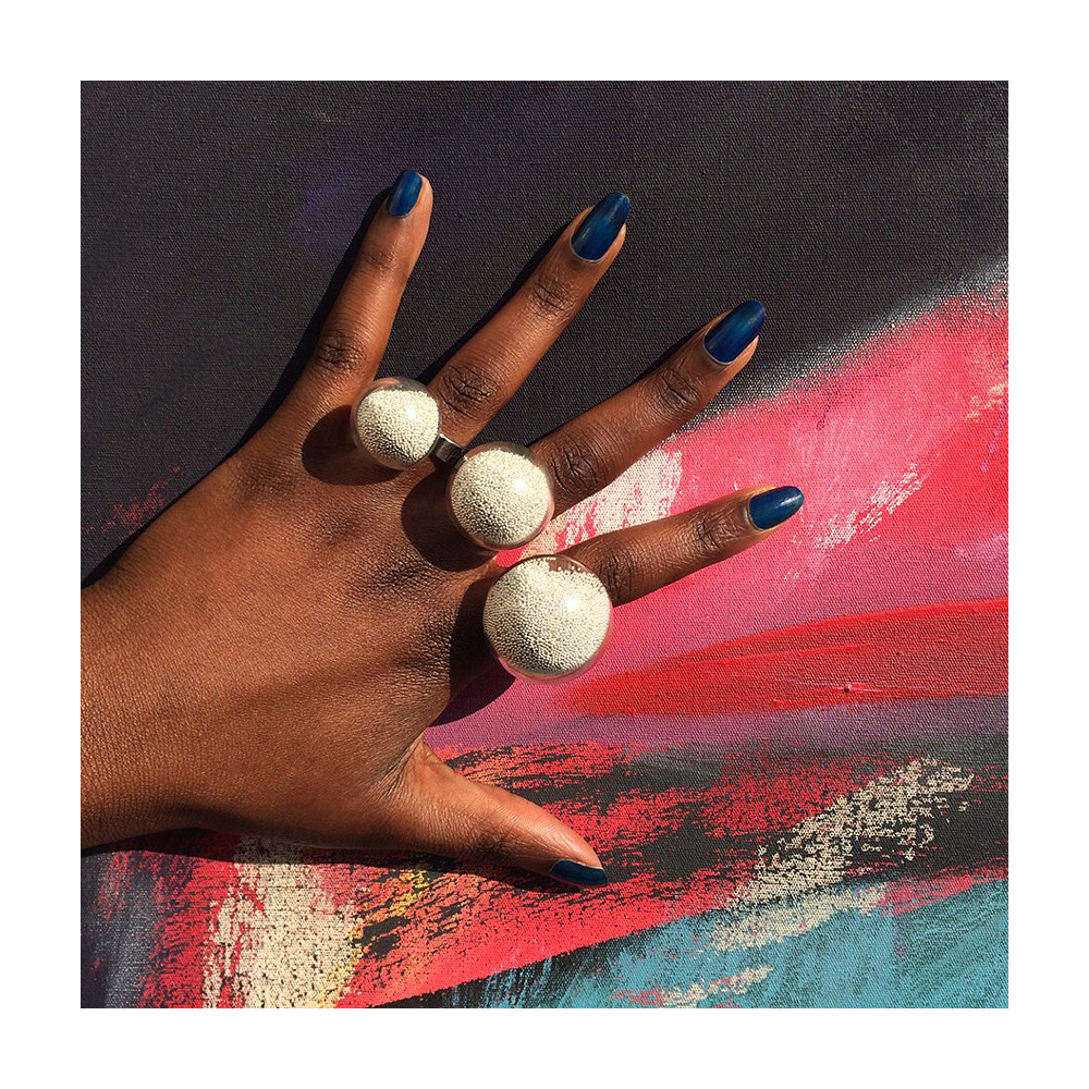 Details : Verstellbare Ringe. Glasschmuck, geblasen in Frankreich. Handwerkliche Herstellung durch Glasbläser.