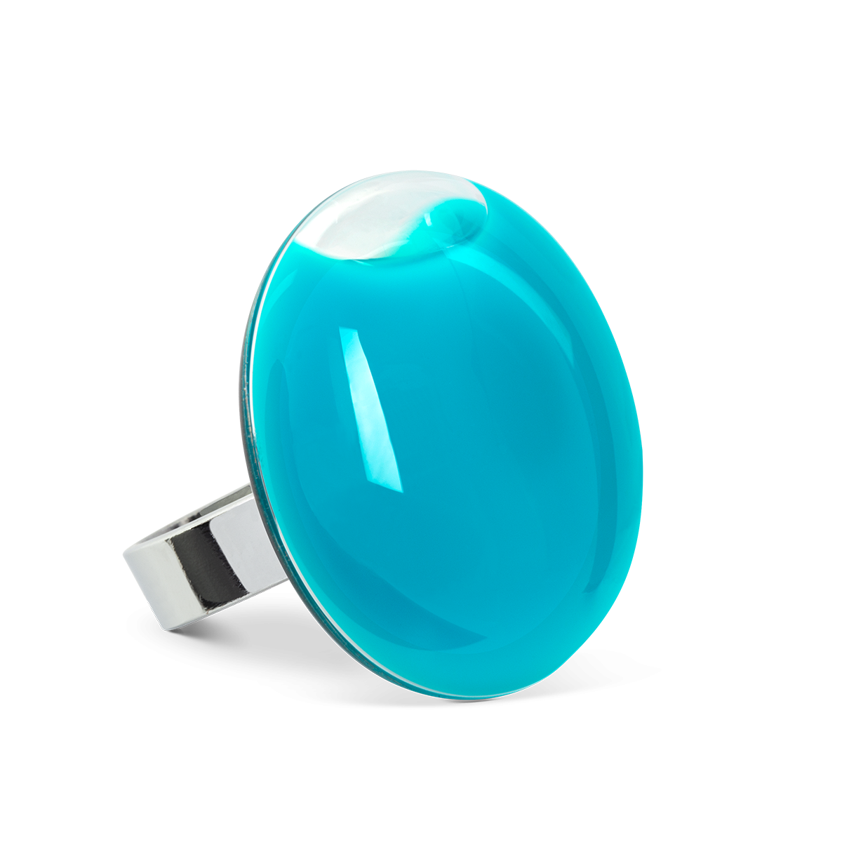 Details : Verstellbare Ringe. Glasschmuck, geblasen in Frankreich. Handwerkliche Herstellung durch Glasbläser.