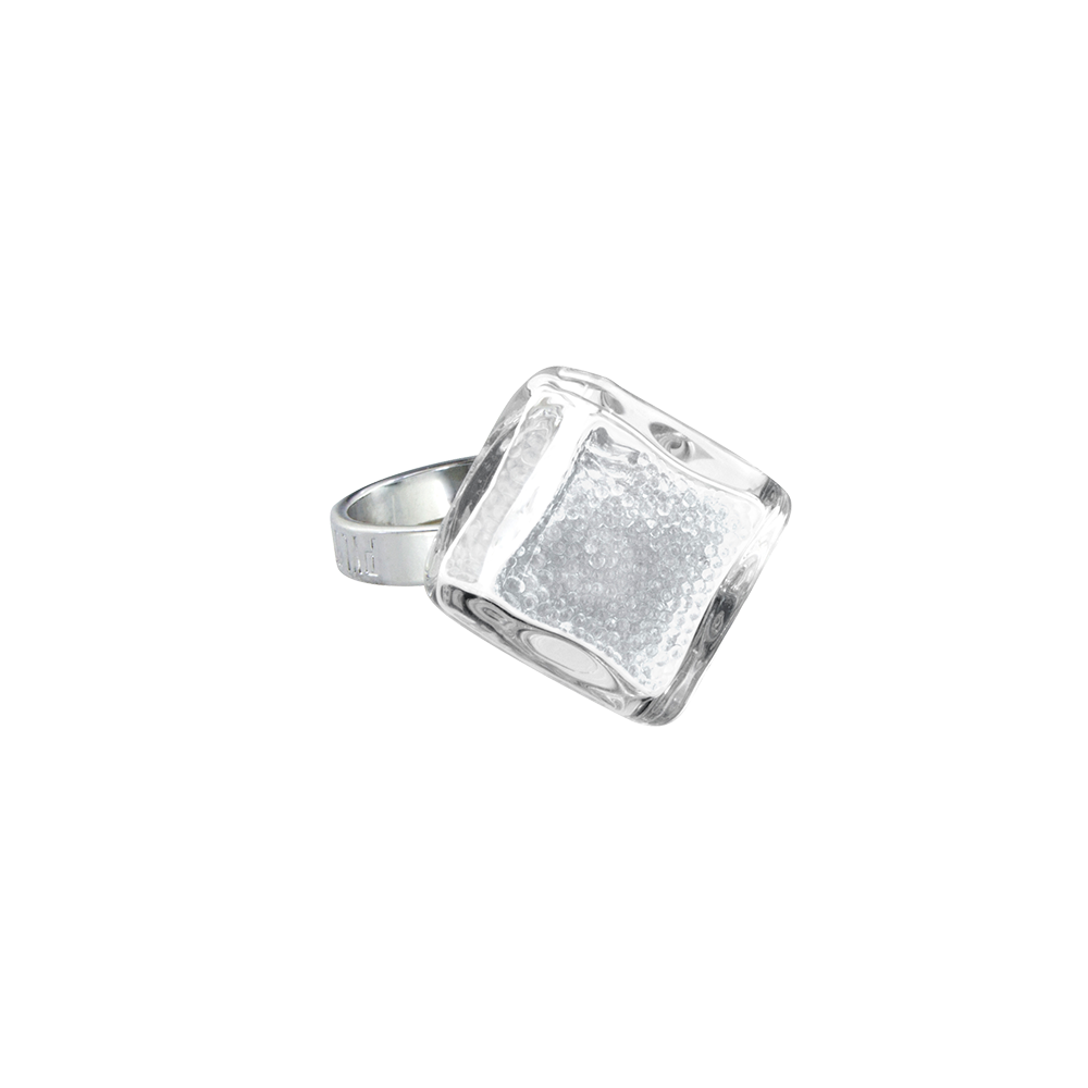 Details : Verstellbare Ringe. Glasschmuck, geblasen in Frankreich. Handwerkliche Herstellung durch Glasbläser.