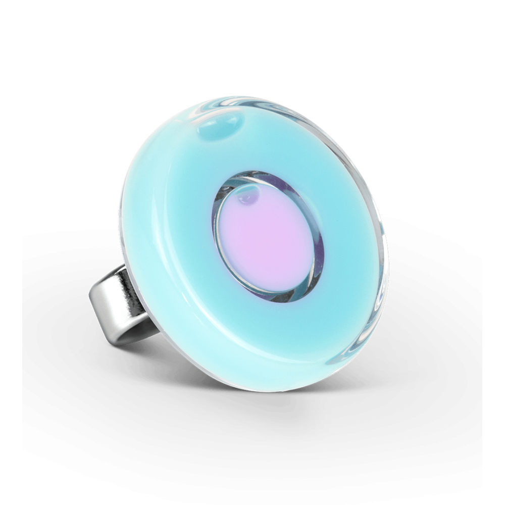 Details : Verstellbare Ringe. Glasschmuck, geblasen in Frankreich. Handwerkliche Herstellung durch Glasbläser.