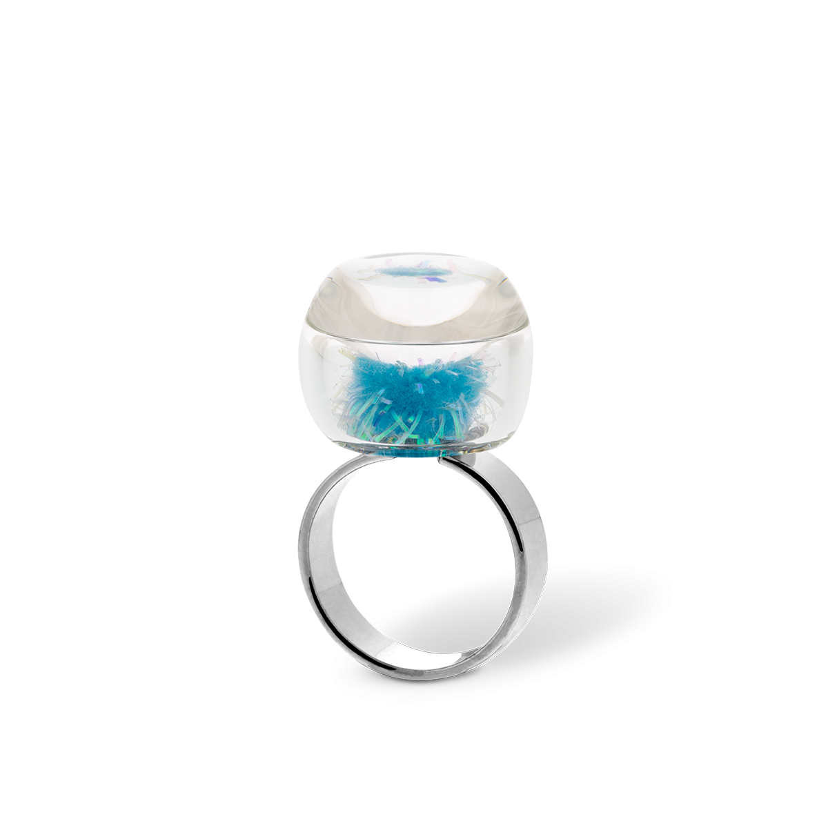 Details : Verstellbare Ringe. Glasschmuck, geblasen in Frankreich. Handwerkliche Herstellung durch Glasbläser.