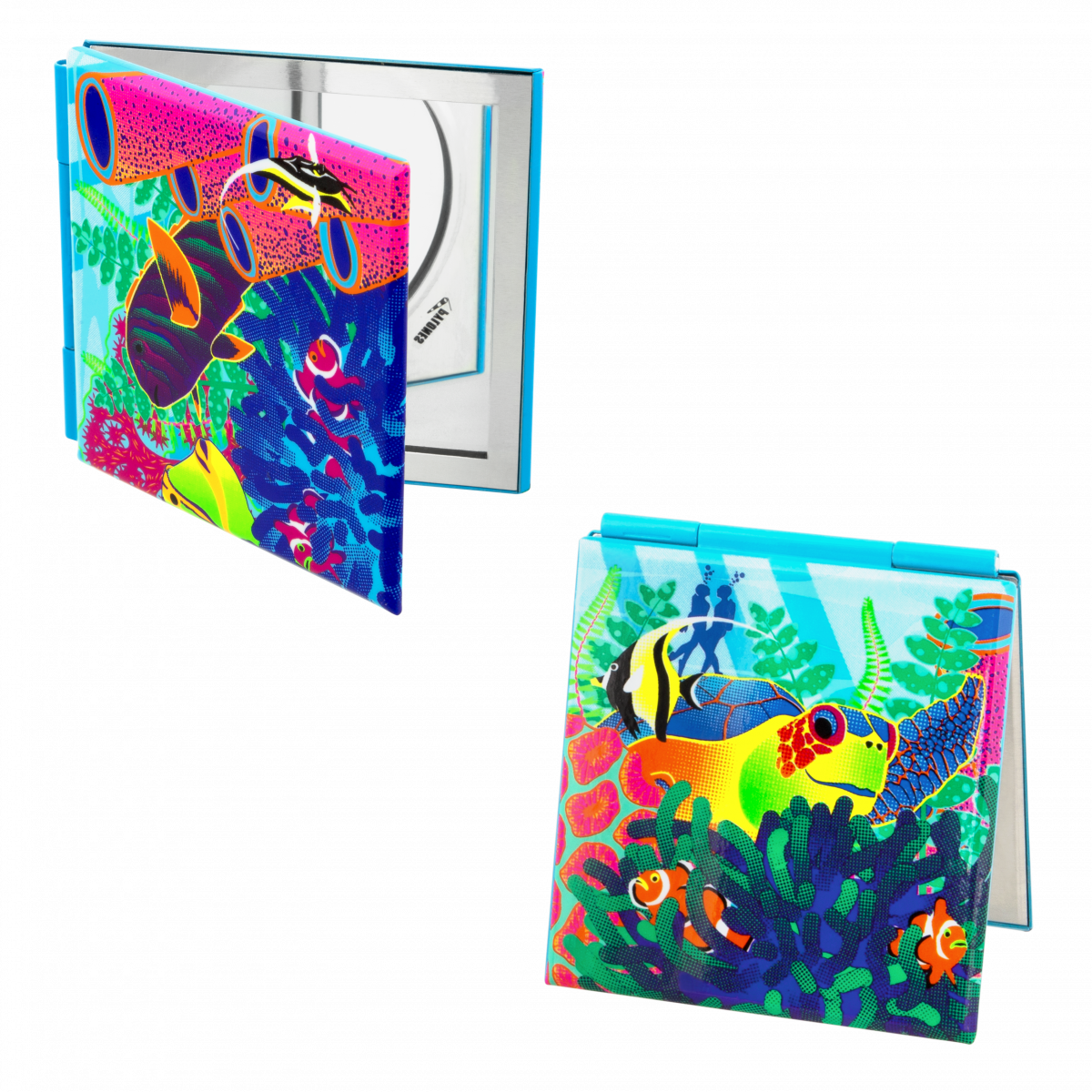 Details : Zwei Spiegel, einer davon vergrößernd. Lässt sich problemlos in einer Handtasche verstauen.