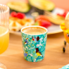 Diese Tasse ist klein, aber voller Überraschungen! Es ermöglicht Ihnen, Ihren Kaffee stilvoll zu trinken oder eine farbenfrohe und blumige Dekoration zu schaffen, indem Sie es als kleinen Topf für Ihre Pflanzen oder als Kerzenhalter verwenden.