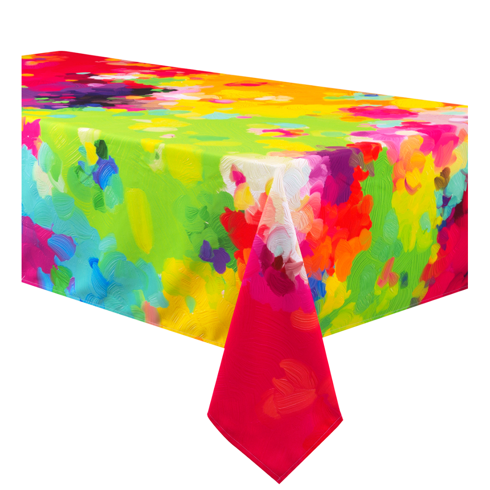 Ihre Gäste sind angekommen! Lassen Sie sich von unseren verschiedenen Mustern mitreißen, die Ihren Tisch mit Glanz kleiden. Kein Zweifel, Ihre Gerichte werden bunt sein. Diese leicht waschbare Tischdecke hat keine Angst vor Flecken.