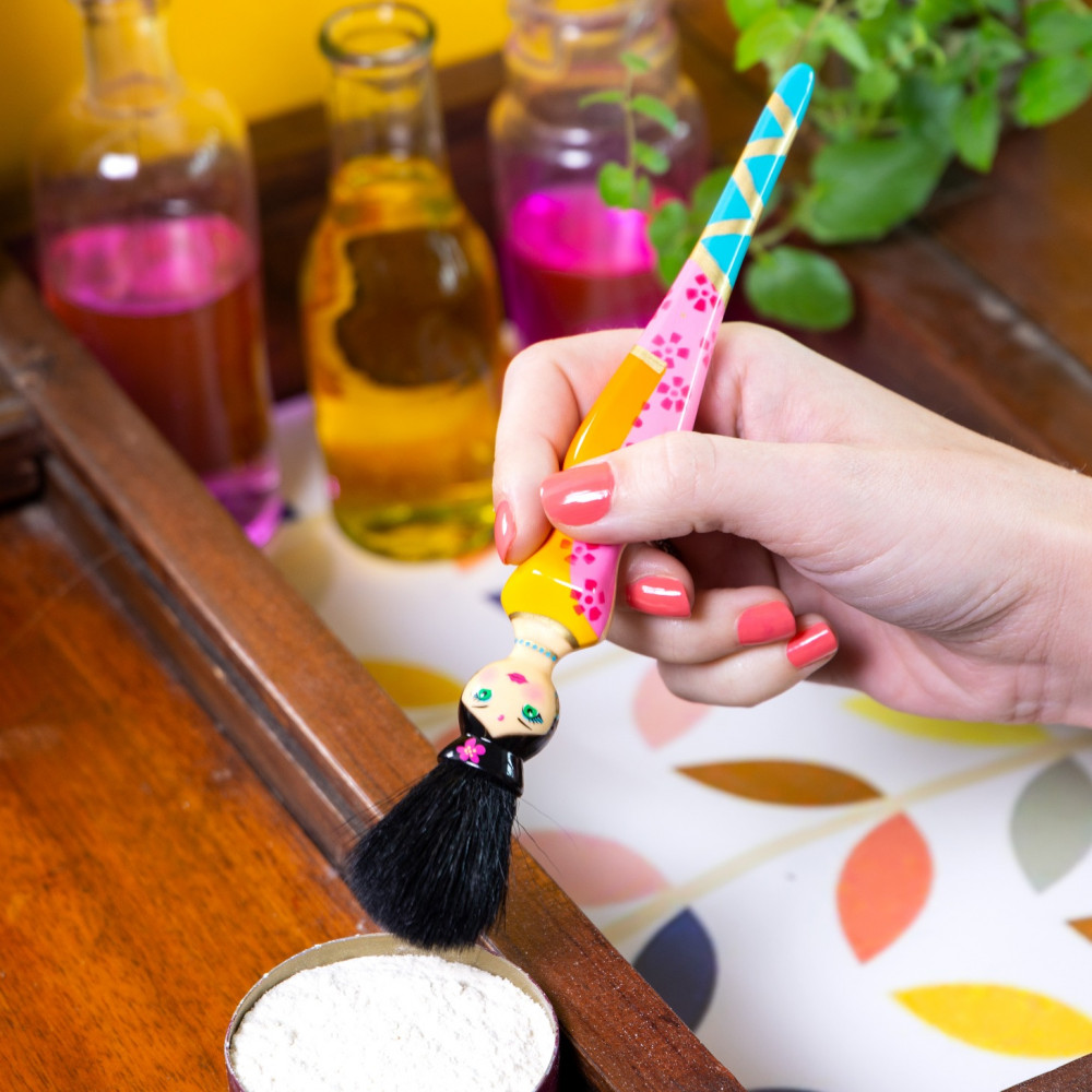Details : Dank des Saugnapfes lässt sich der Rouge-Pinsel an verschiedenen Oberflächen im Badezimmer befestigen.