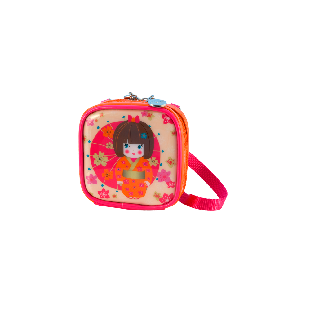 Die Geldbörse mit Gurt für den Klassenausflug. Neben einem zentralen Fach mit Reißverschluss besitzt sie mehrere Fächer für Karten, Münzen, Tickets und kleine Geheimnisse …