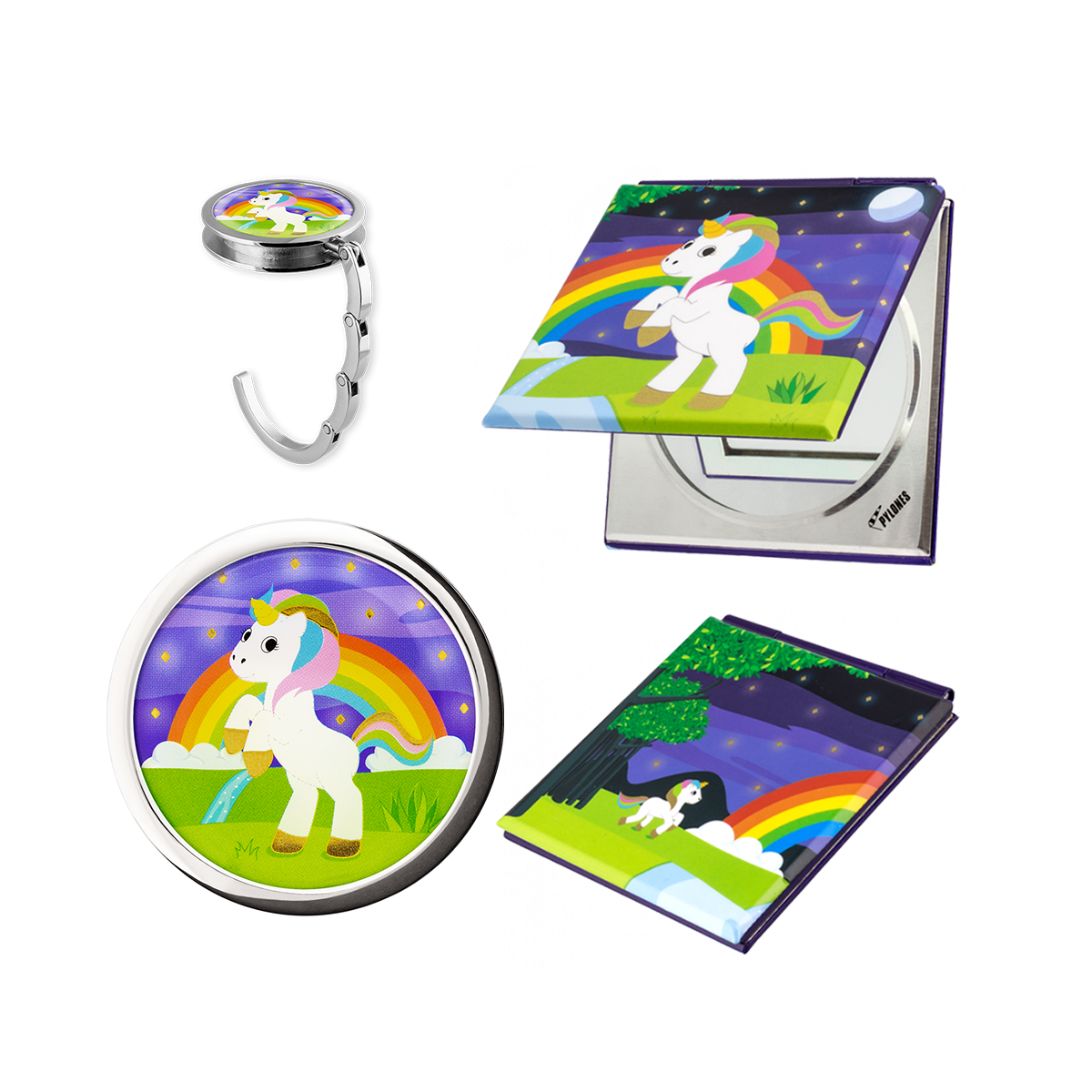 Das ideale Set für jeden Ausflug! Dieser Haken ist perfekt, um Ihre Handtasche oder Ihre Maske an einem Restauranttisch aufzuhängen. Zusammen mit diesem kleinen Spiegel können Sie mit diesem Set bei den letzten Nachbesserungen helfen!