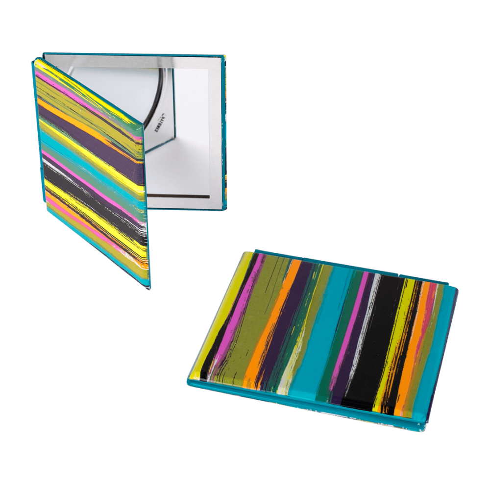 Details : Zwei Spiegel, einer davon vergrößernd. Lässt sich problemlos in einer Handtasche verstauen.