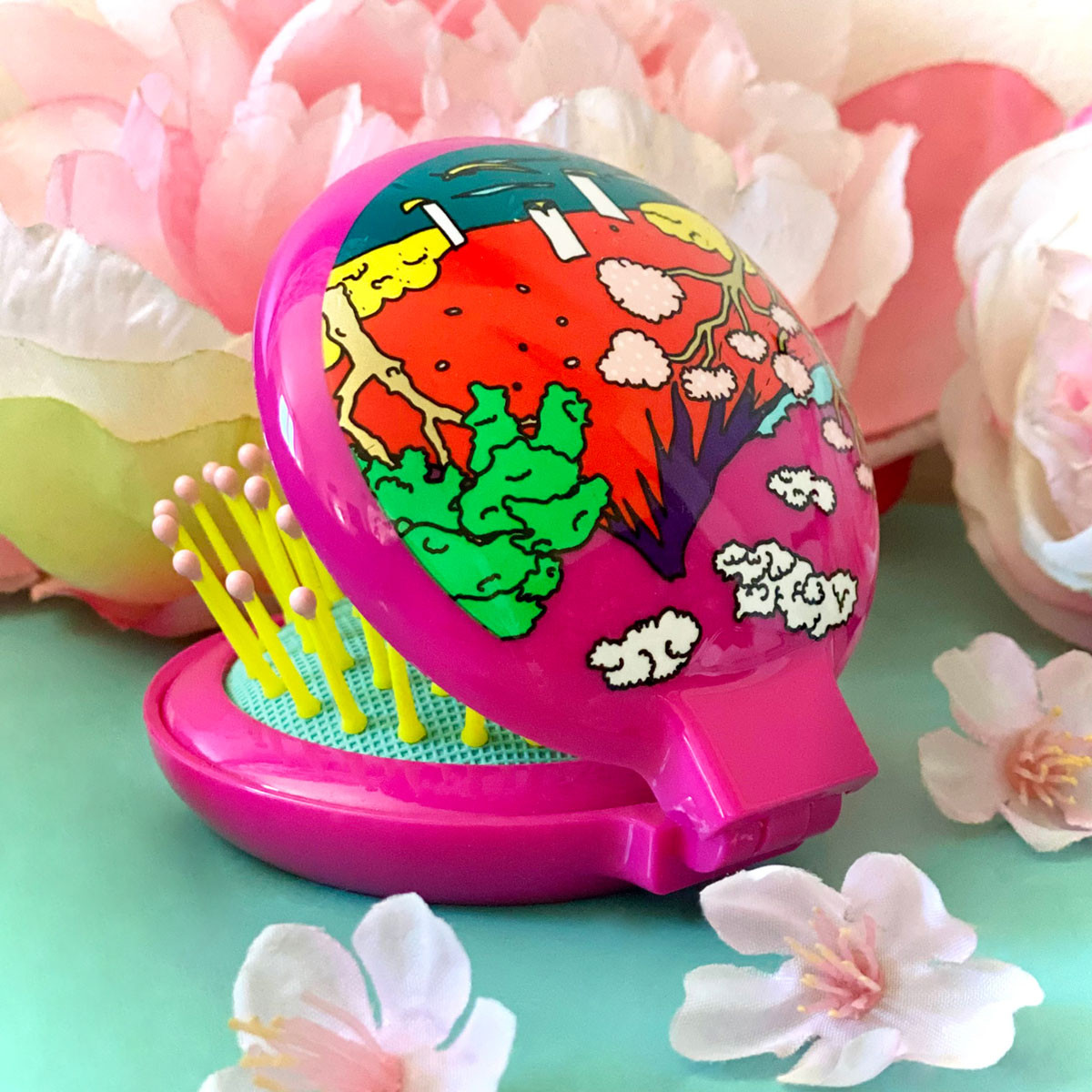 Details : Bürste auf der einen, Spiegel auf der anderen Seite.