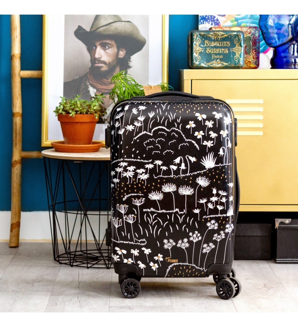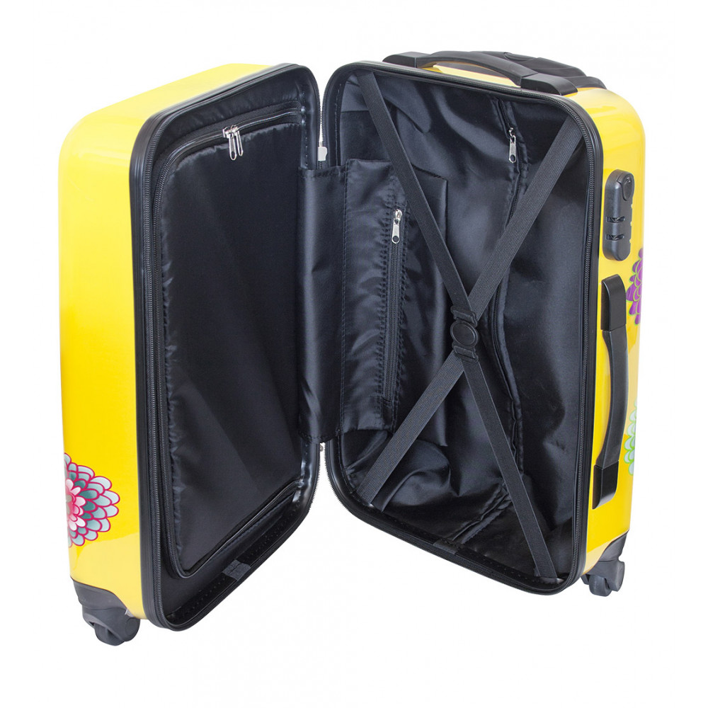 Details : 4 wheels / Suitable as hand baggage / Large inside pocket and 2 elastic bands. To change the code for the built-in lock (base code 000), pull and hold the button while changing the code