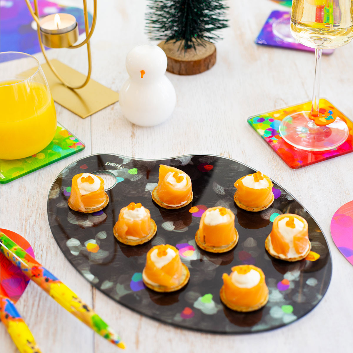 Cette palette peinture en verre en guise de plateau à fromages est très jolie. Je l'ai également assortie avec le couteau à fromages. Enchantée de ma commande !
