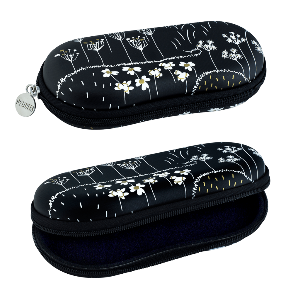 À la fois rigide et léger. Il protège très bien les lunettes. Le zip est idéal à utiliser. Je l’ai dans la collection Palette. Je l’adore !