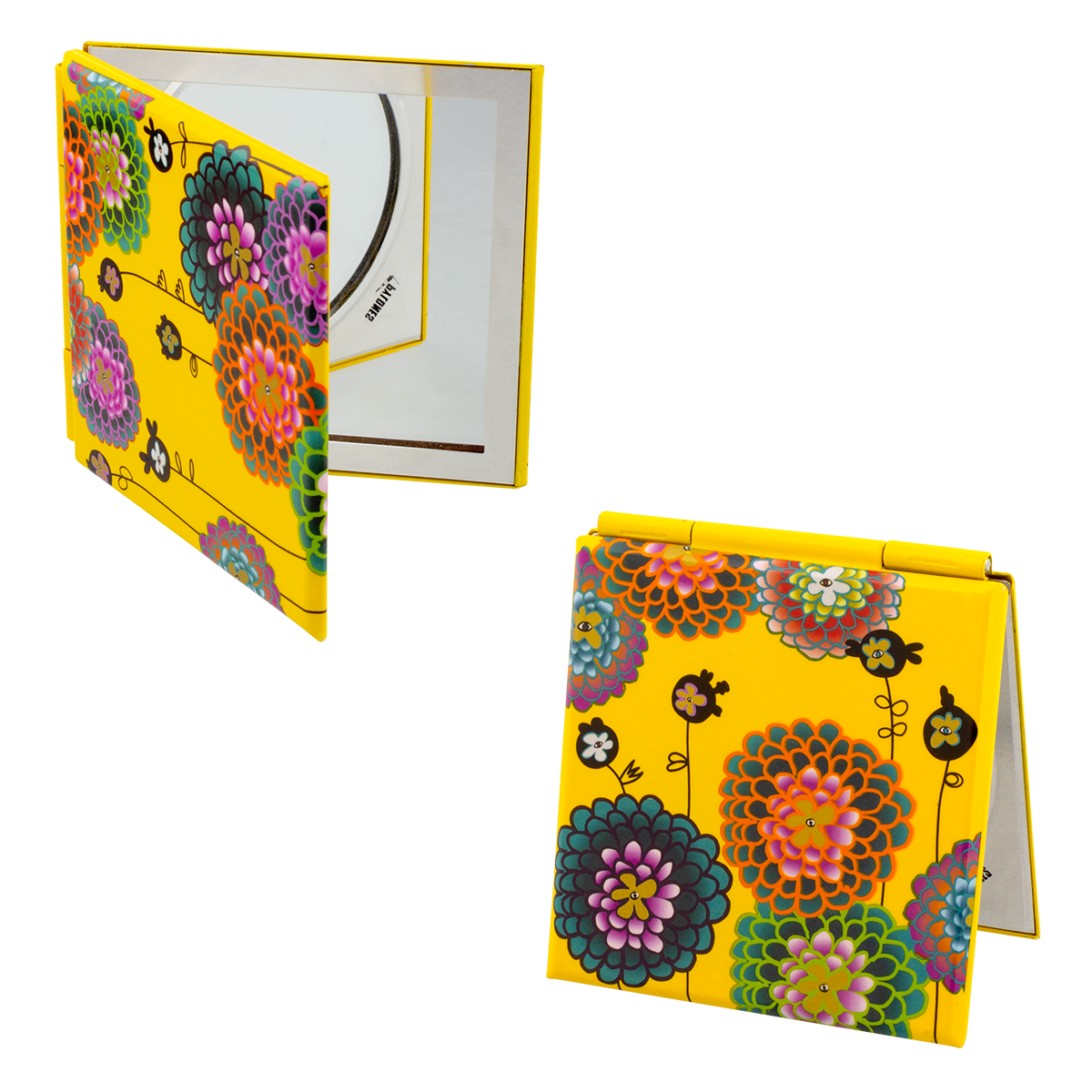 I’m a tiny two-sided pocket mirror (magnifying mirror on one side). Small but perfectly formed, I'm the opposite of a looking glass!