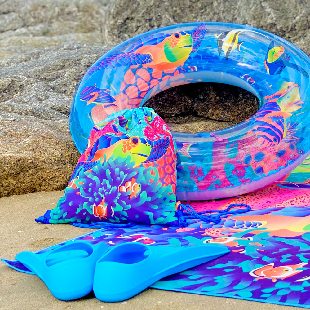 Dive into the heart of the ocean. So many sparkling confetti float inside the inflatable ring !