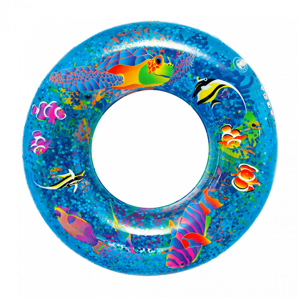 Dive into the heart of the ocean. So many sparkling confetti float inside the inflatable ring !