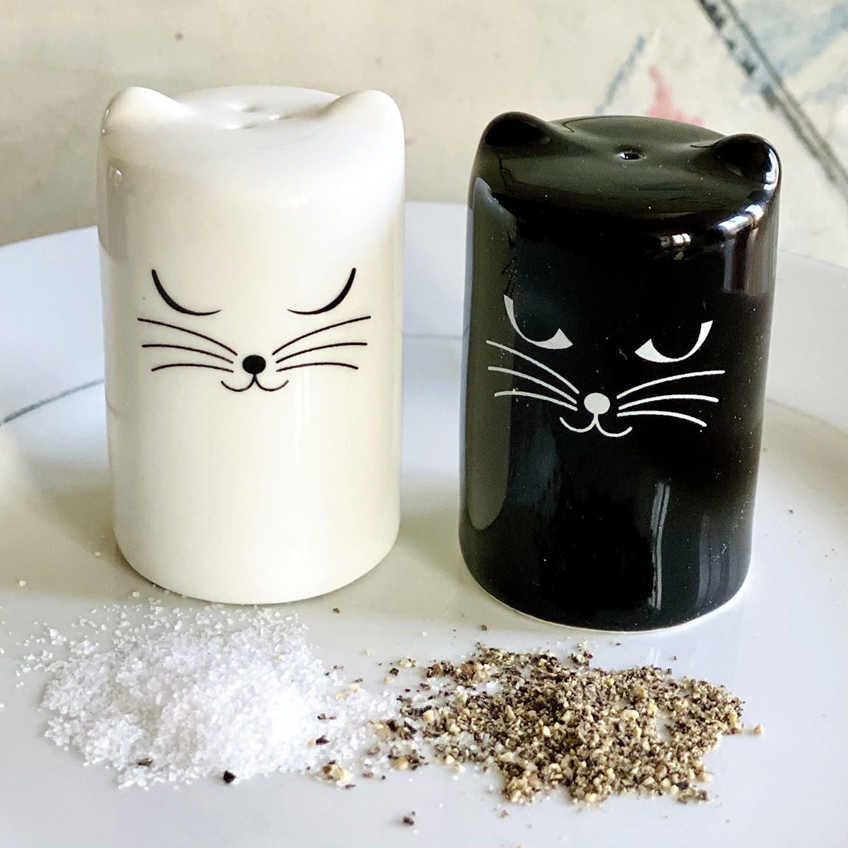 Shake our little cats to serve some salt and pepper! Our couple will add a little spice to your table decoration!