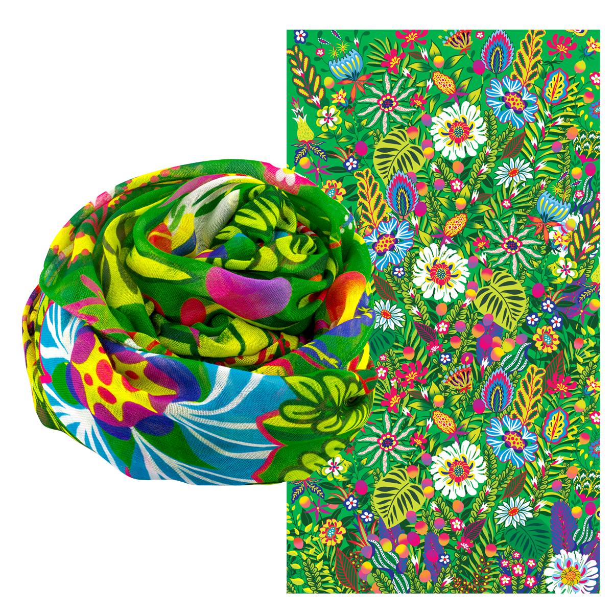 The indispensable Pylones scarves made from recycled viscose! Soft and warm around the neck in mid-season, they turn into a sarong as soon as summer arrives. The collection of patterns is breathtaking, choose your colour!