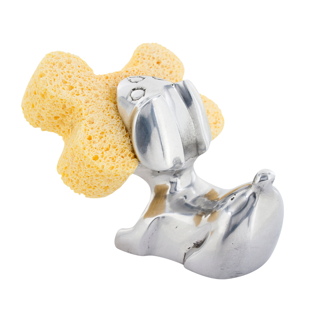 Four of our in-house designs have gone mental for metal! Our Owl glasses holder, Piu Piu paperweight, and Max and Clean sponge holders. This collection is handcrafted, each object is unique and has irregularities that are part of its charm.