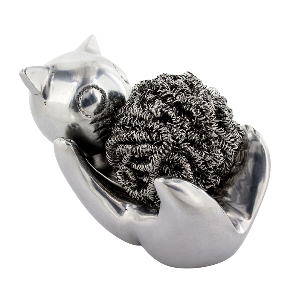 Four of our in-house designs have gone mental for metal! Our Owl glasses holder, Piu Piu paperweight, and Max and Clean sponge holders. This collection is handcrafted, each object is unique and has irregularities that are part of its charm.