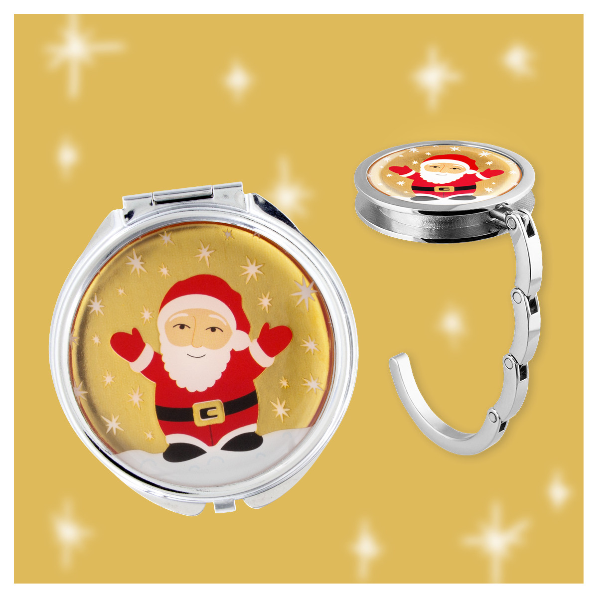Pull out my arm and place me on a flat surface. Now you’re hooked! A portable bag holder! Use it to hang handbags in restaurants, laptop cases at the office and coats on a shelf. Shine while you dine!