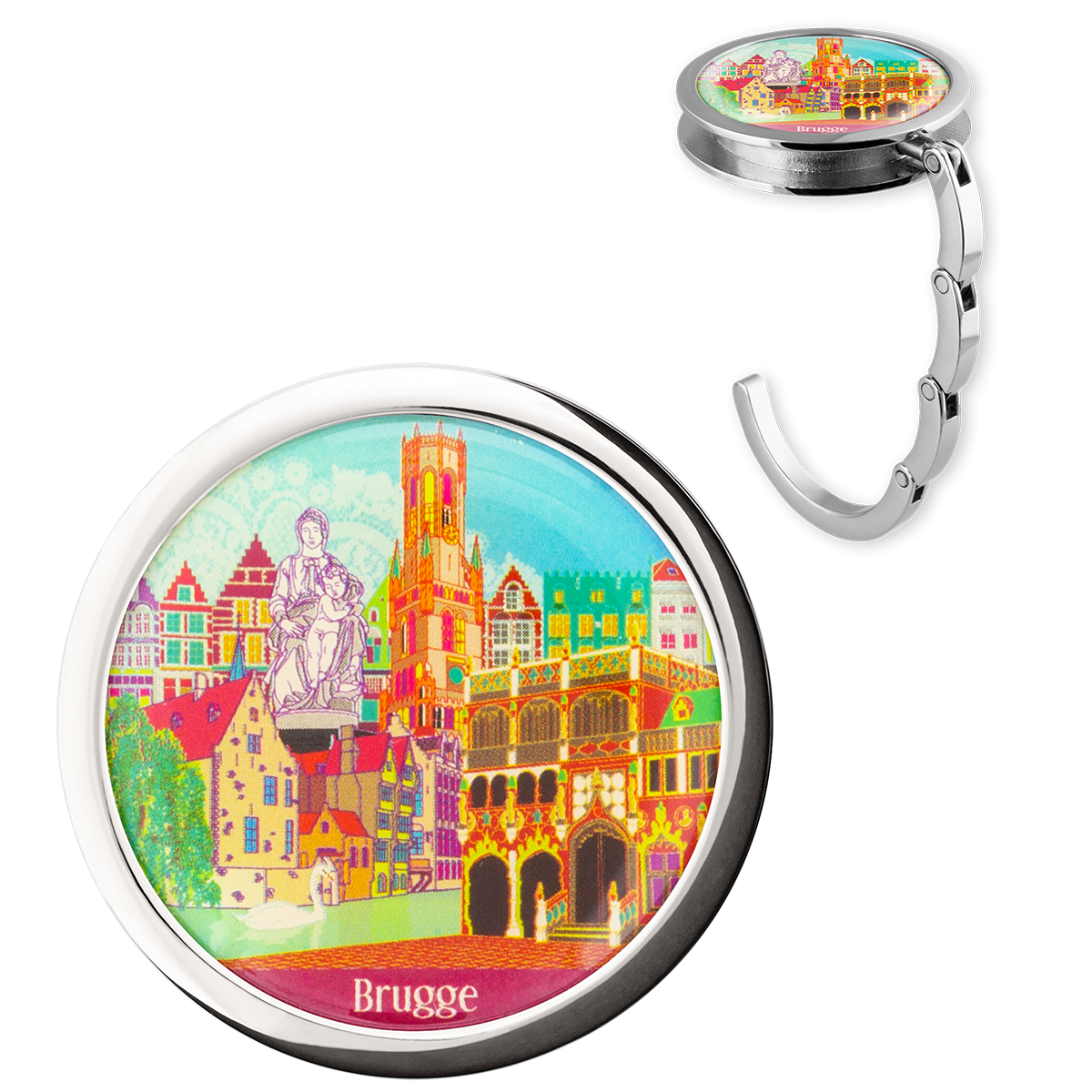 Pull out my arm and place me on a flat surface. Now you’re hooked! A portable bag holder! Use it to hang handbags in restaurants, laptop cases at the office and coats on a shelf. Shine while you dine!