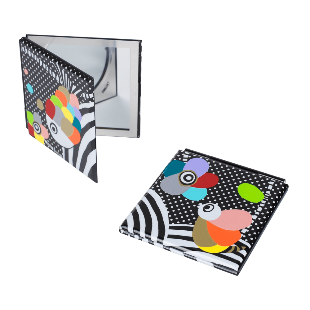 I’m a tiny two-sided pocket mirror (magnifying mirror on one side). Small but perfectly formed, I'm the opposite of a looking glass!