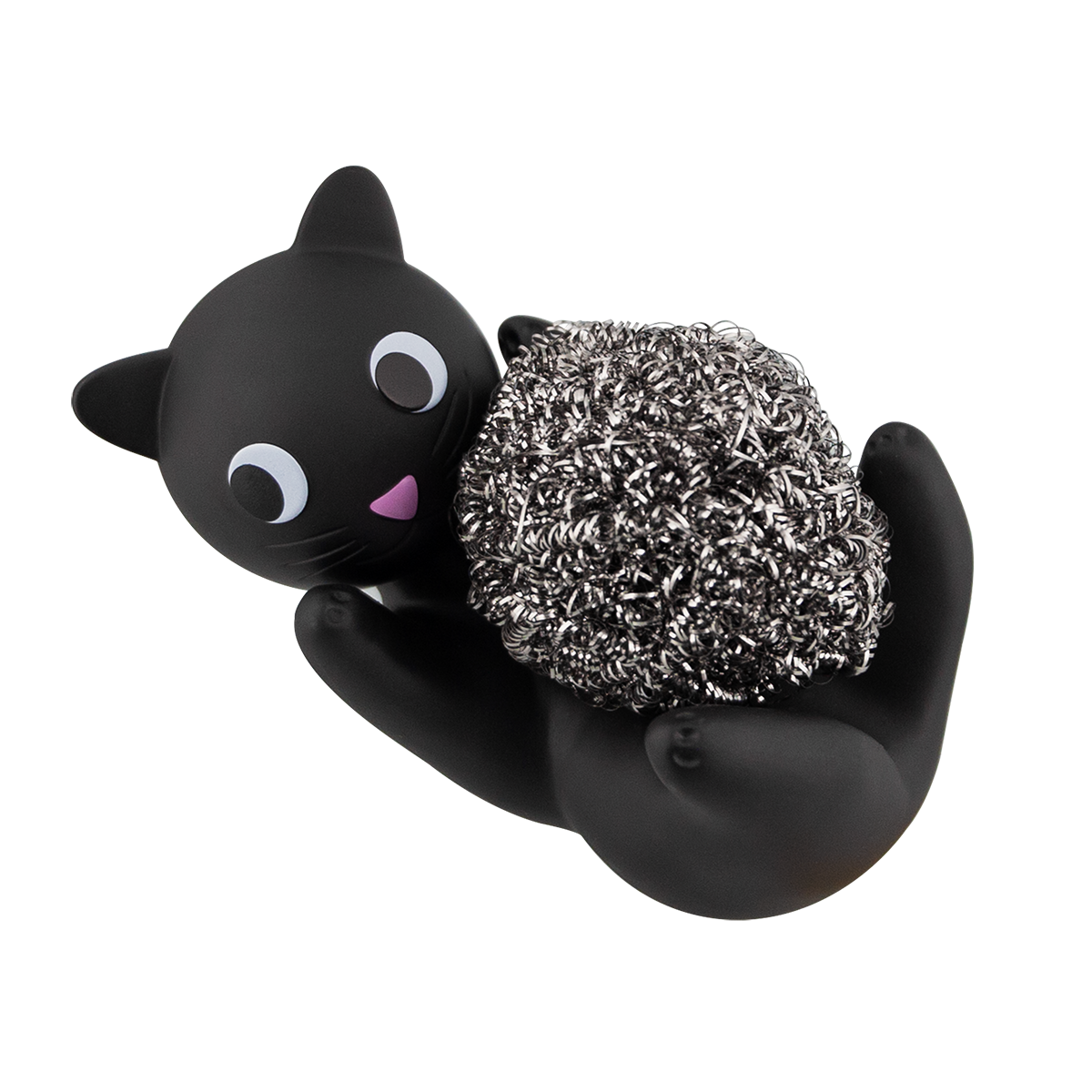 What’s Max’s thing? Why, to look after your steel sponges, so you don’t have to scour the kitchen in search of them! He also holds soap, so you don’t get in a lather!