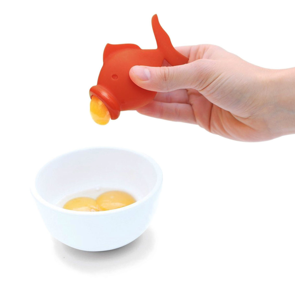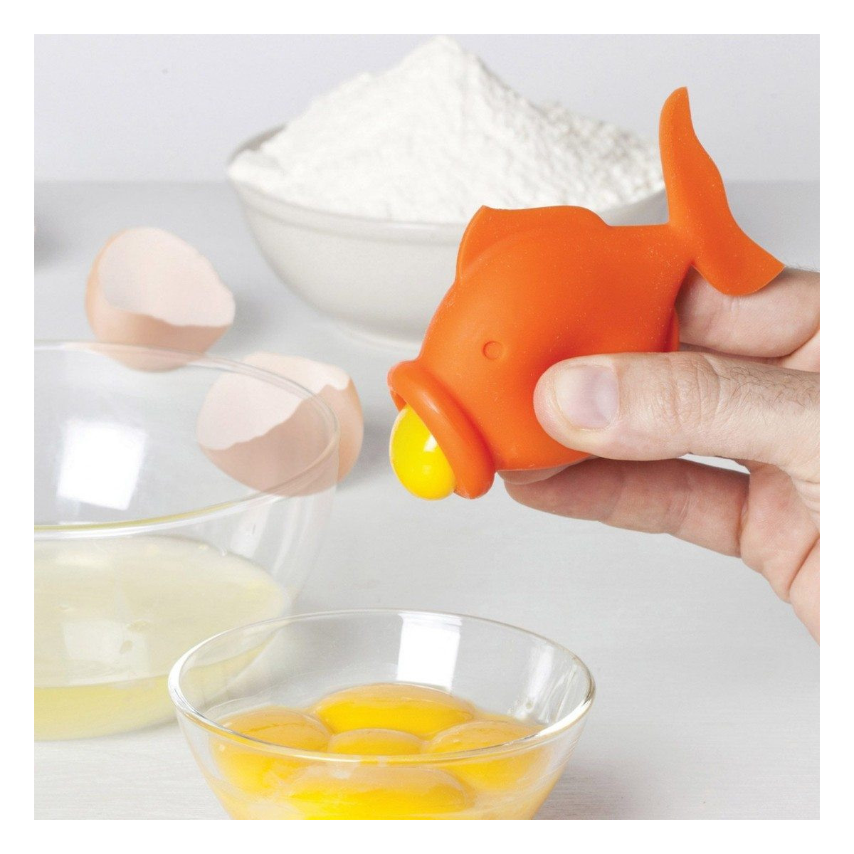 D'une simple pression de la main, ce poisson gobeur va provoquer un vide d'air pour retirer le jaune du blanc et ainsi le mettre dans un autre plat.