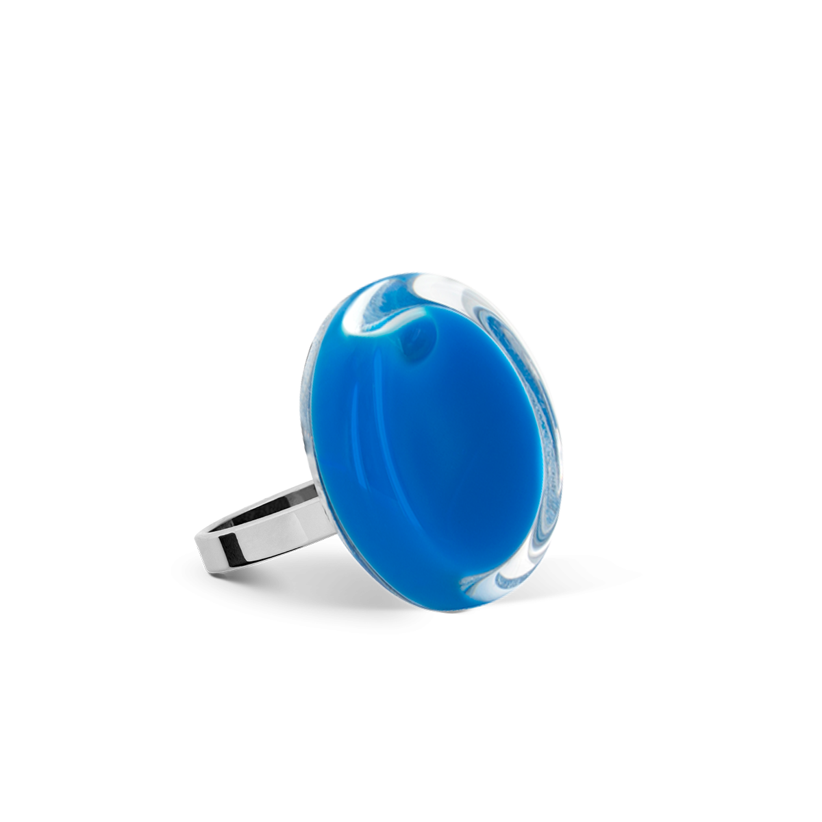 Détails : Anneaux réglables. Bijoux en verre soufflés en France. Fabrication artisanale par des souffleurs de verre.