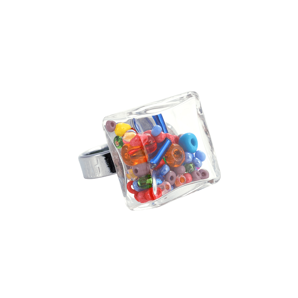 Bague en verre soufflée - Carré Medium Mix Perles : Caractéristiques