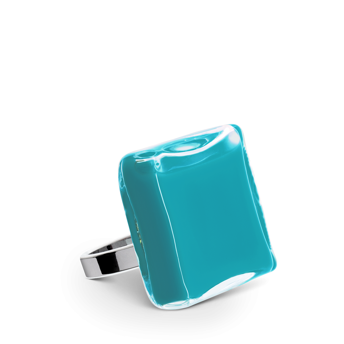 Bague en verre soufflée - Carré Mini Milk Turquoise