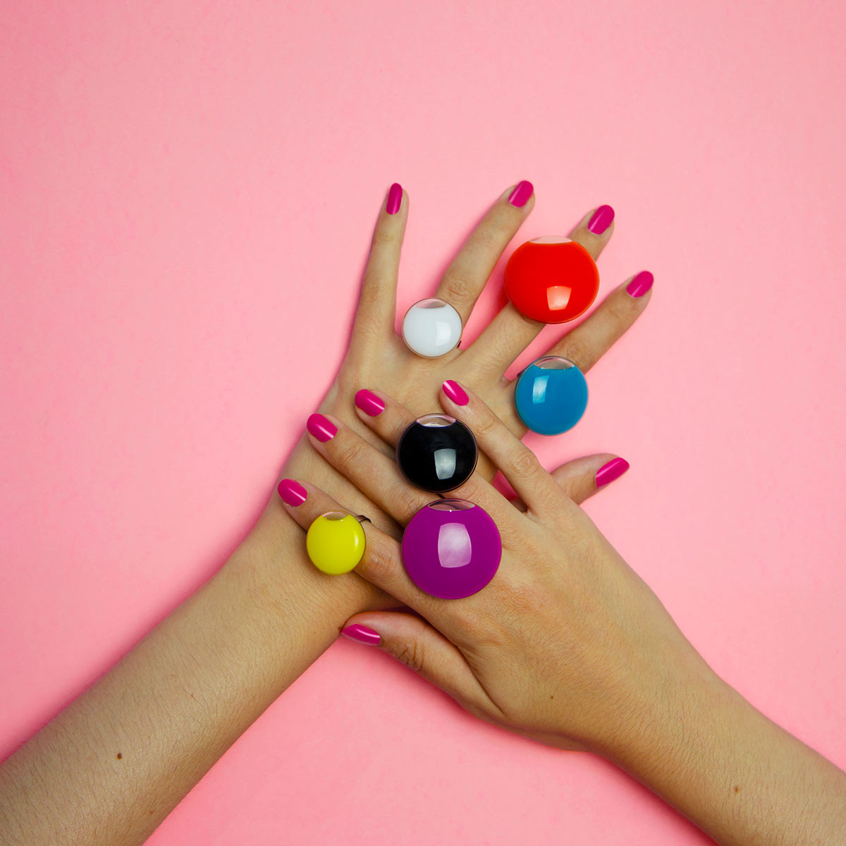 Made in France ! Bagues inventées et façonnées par notre atelier de verre soufflé, niché au cœur de la fabrique Pylones. Une collection iconique et fameuse qui ferait pâlir de jalousie un arc-en-ciel !
