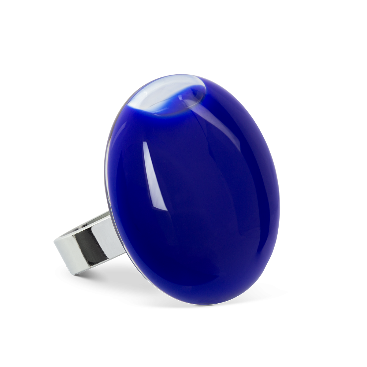 Détails : Anneaux réglables. Bijoux en verre soufflés en France. Fabrication artisanale par des souffleurs de verre.