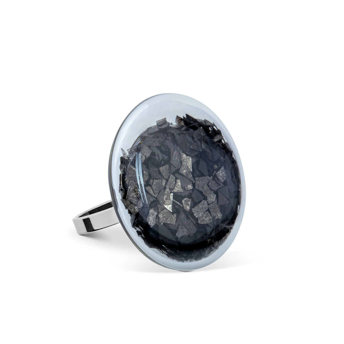 Bague en verre soufflée - Galet Mini Paillettes Noir