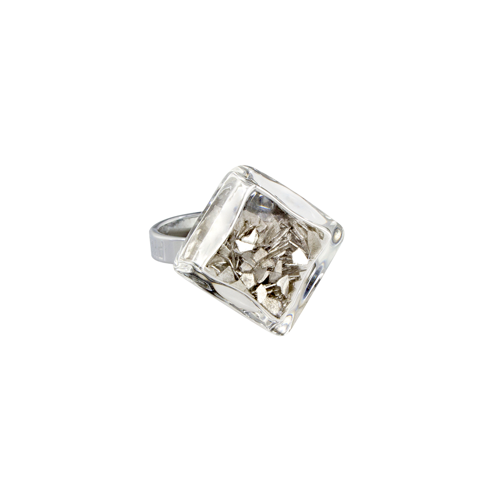 Bague en verre soufflée - Losange Nano Paillettes Argent