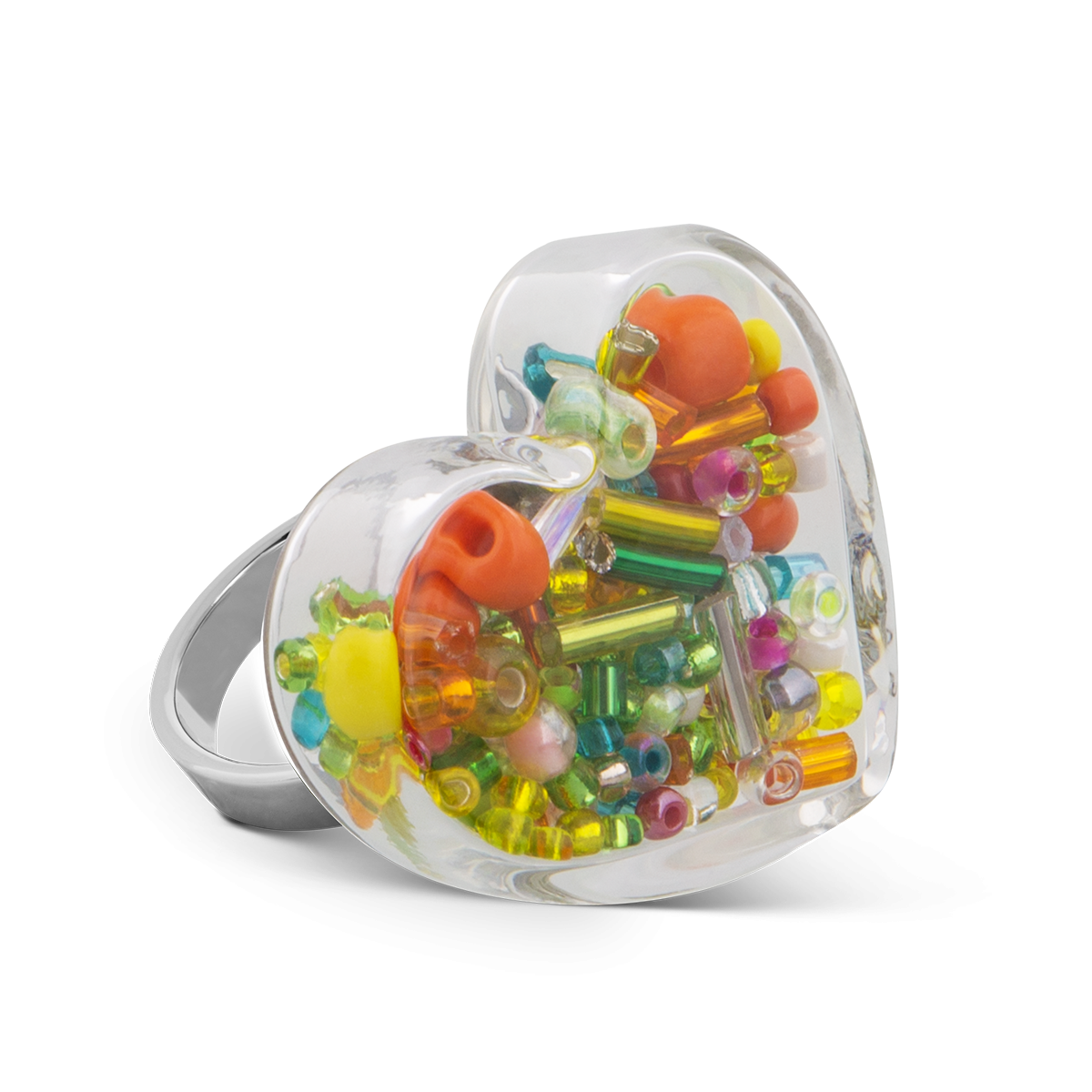 Bague en verre soufflée - Coeur Medium Billes Multicolore