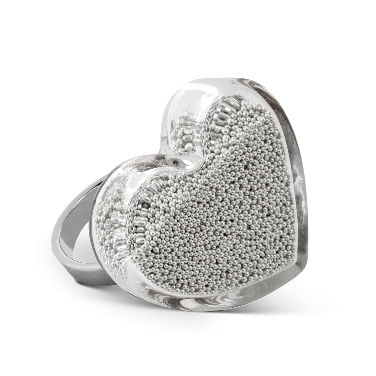 Bague en verre soufflée - Coeur Medium Billes Argent