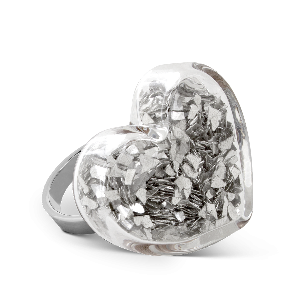 Bague en verre soufflée - Coeur Medium Paillettes Argent