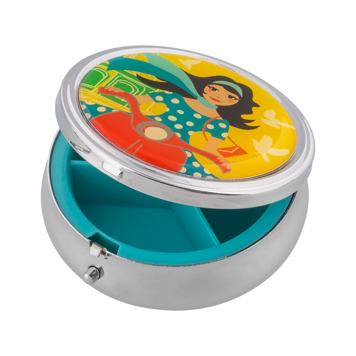 Détails : Boîte permettant de ranger les médicaments. Appuyer sur le bouton pour ouvrir la boîte. Pour la refermer, il suffit de clipper le couvercle.