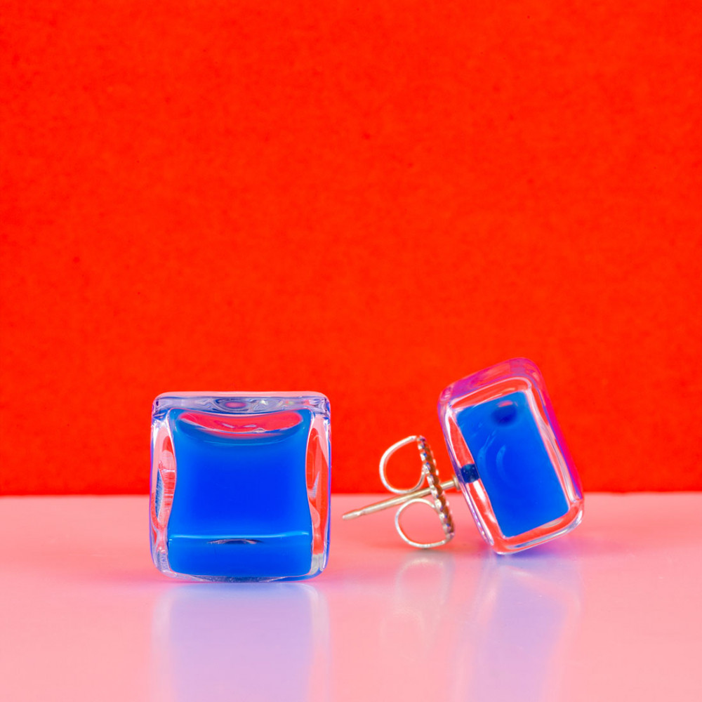 Boucles d'oreilles clou en verre soufflées - Carré Milk : Motifs existants