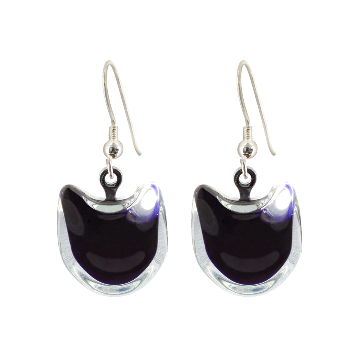 Boucles d'oreilles crochet en verre soufflées - Chat Milk Noir